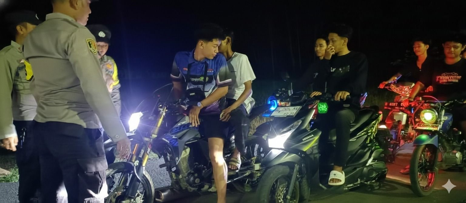 Antisipasi Kejahatan Malam, Polsek Bandar Negeri Suoh Gelar Patroli KRYD dan Tertibkan Knalpot Brong