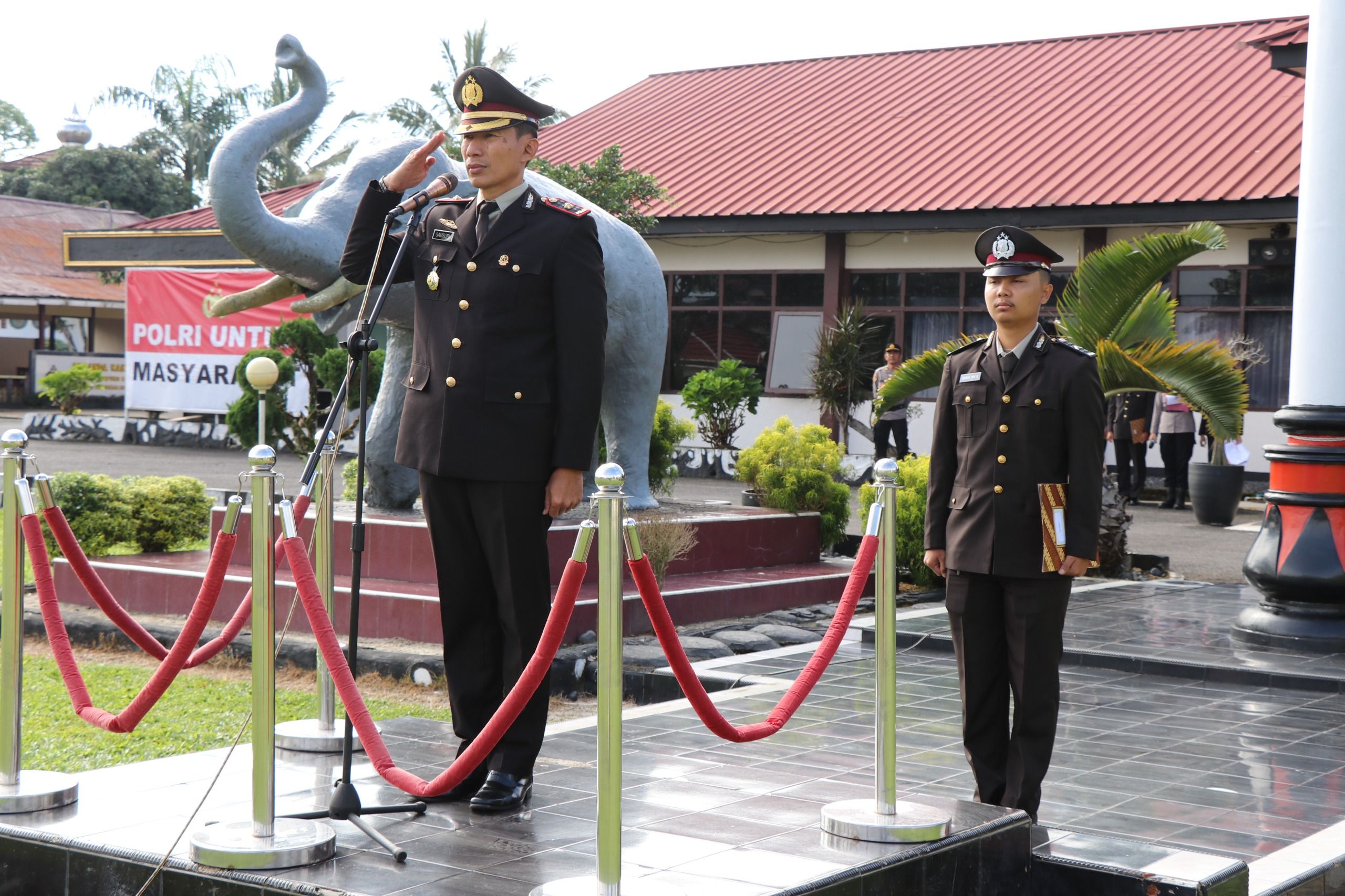 tribratanews.lampung.polri.go.id Lampung Barat – Polres Lampung Barat melaksanakan upacara memperingati Hari Kesaktian Pancasila yang jatuh pada 1 Oktober 2025. Kegiatan ini berlangsung di halaman Mapolres Lampung Barat dengan khidmat, diikuti oleh seluruh pejabat utama, perwira, bintara, serta ASN Polri.Kapolres Lampung Barat, AKBP Rinaldo Aser, S.H., S.I.K., M.Si., melalui Wakapolres Lampung Barat, Kompol Samsuri, S.H., M.H., menyampaikan bahwa upacara ini menjadi momentum untuk mengenang kembali jasa para pahlawan yang telah mempertahankan ideologi Pancasila dari rongrongan gerakan yang ingin menggantinya. “Melalui peringatan Hari Kesaktian Pancasila ini, kita diingatkan kembali untuk terus menjaga persatuan bangsa, mengamalkan nilai-nilai Pancasila dalam kehidupan sehari-hari, serta memperkuat komitmen menjaga keutuhan NKRI,” ujar Kompol Samsuri. Upacara berlangsung dengan khidmat dan penuh semangat nasionalisme. Seluruh peserta tampak mengikuti rangkaian kegiatan dengan tertib, mulai dari pengibaran bendera Merah Putih hingga pembacaan ikrar kesetiaan terhadap Pancasila.