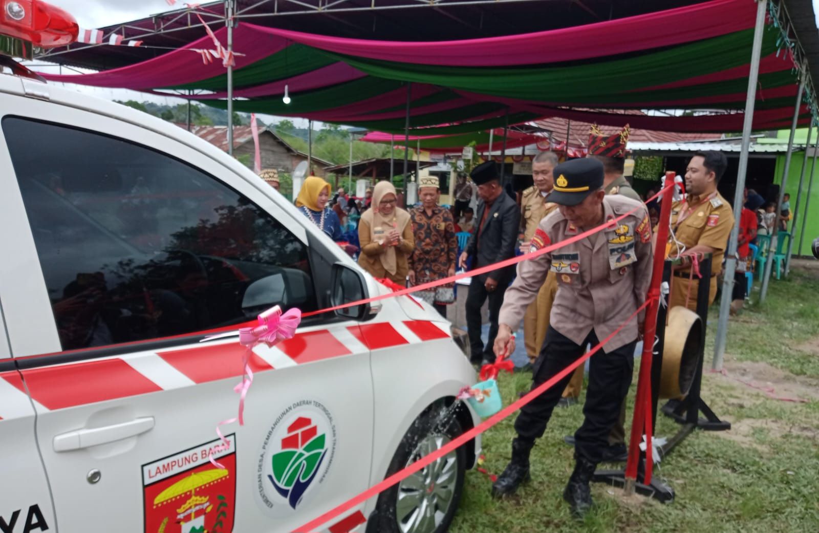 Polsek Balik Bukit Lakukan Monitoring Kegiatan Peresmian Mobil Ambulance Pekon Padang Cahya
