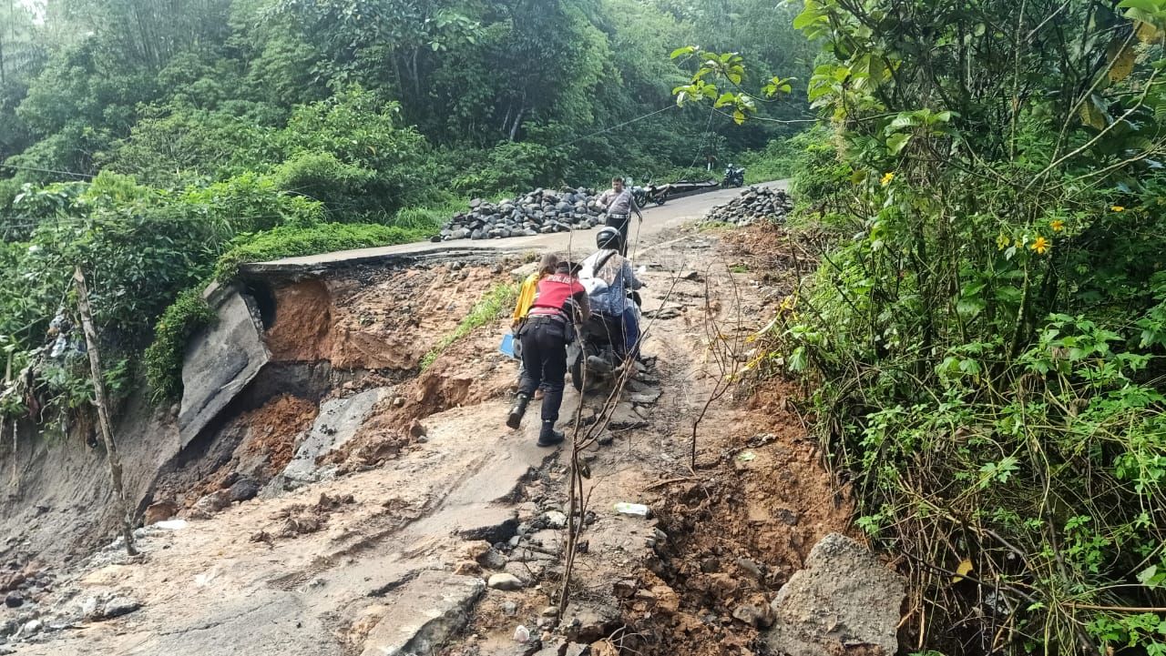 polsek balik bukit lakukan pengamanan dan pengaturan di lokasi jalan amblas