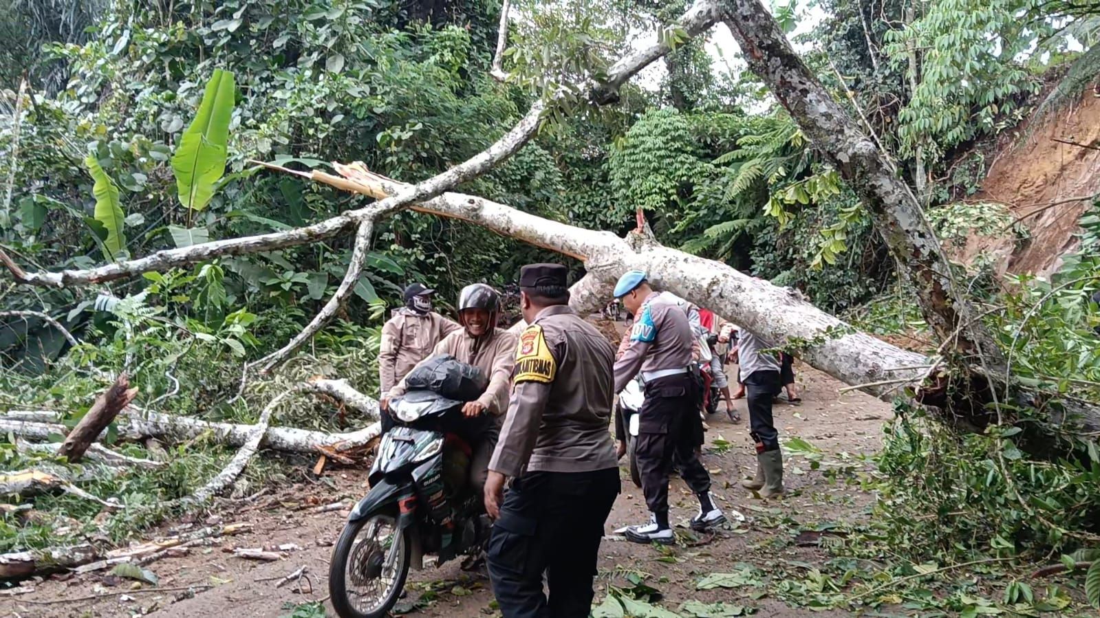 tribratanews.lampung.polri.go.id Lampung Barat – Polsek Balik Bukit melaksanakan pengamanan di lokasi longsor yang terjadi di Jalan Lintas Liwa–Ranau, Pekon Padang Cahya, Kecamatan Balik Bukit, Kabupaten Lampung Barat. Hingga saat ini, arus lalu lintas di lokasi masih diberlakukan sistem buka tutup untuk mengantisipasi kemacetan dan menjaga keselamatan pengguna jalan.Kapolres Lampung Barat, AKBP Rinaldo Aser, S.H., S.I.K., M.Si., melalui Kapolsek Balik Bukit, AKP Sabtudin, mengatakan pihaknya menurunkan personel untuk melakukan pengaturan lalu lintas serta memberikan imbauan kepada masyarakat agar tetap berhati-hati saat melintas. “Personel Polsek Balik Bukit kami tempatkan di lokasi longsor untuk membantu kelancaran arus kendaraan. Saat ini masih diberlakukan sistem buka tutup karena material longsor belum sepenuhnya dibersihkan. Kami mengimbau masyarakat agar tetap waspada dan berhati-hati,” ujar AKP Sabtudin. Ia menambahkan, pihak kepolisian terus berkoordinasi dengan instansi terkait untuk mempercepat penanganan material longsor sehingga arus lalu lintas bisa kembali normal.