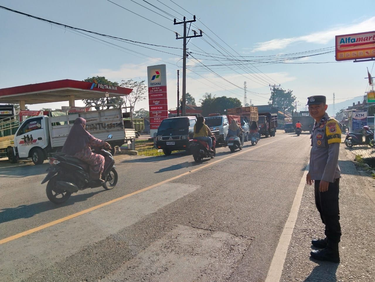 tribratanews.lampung.polri.go.id Lampung Barat – Polsek Sumber Jaya, Polres Lampung Barat, melaksanakan kegiatan pengamanan dan pengaturan arus kendaraan di sekitar Stasiun Pengisian Bahan Bakar Umum (SPBU) wilayah Kecamatan Sumber Jaya, Senin (6/10/2025).Kegiatan ini dilakukan sebagai langkah antisipasi terhadap potensi kemacetan serta gangguan kamtibmas yang mungkin terjadi akibat meningkatnya aktivitas masyarakat di area SPBU, terutama pada jam-jam sibuk. Kapolres Lampung Barat AKBP Rinaldo Aser, S.H., S.I.K., M.Si. melalui Kapolsek Sumber Jaya AKP Rekson Syahrul mengatakan, pengamanan tersebut dilakukan untuk memastikan situasi tetap tertib dan aman, baik bagi pengendara maupun masyarakat sekitar.