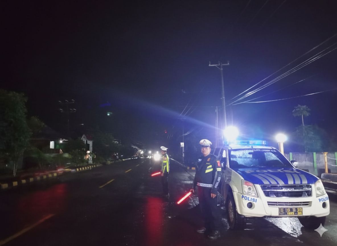 tribratanews.lampung.polri.go.id Lampung Barat — Satuan Lalu Lintas Polres Lampung Barat melaksanakan kegiatan Strong Point dan Patroli Malam Presisi pada Selasa, 02 Desember 2025, mulai pukul 22.00 WIB hingga selesai. Kegiatan ini difokuskan pada pemantauan arus lalu lintas dan antisipasi kerawanan kejahatan di sepanjang Jalan Lintas Liwa, Kelurahan Sebarus, Kecamatan Balik Bukit, Kabupaten Lampung Barat.Dalam pelaksanaannya, personel Sat Lantas melakukan pemantauan arus lalin untuk memastikan situasi tetap aman dan lancar pada malam hari. Selain itu, patroli difokuskan pada lokasi-lokasi yang berpotensi rawan terjadinya tindak kejahatan C3 (Curas, Curat, dan Curanmor), sebagai langkah preventif guna menciptakan keamanan bagi pengguna jalan dan masyarakat sekitar. Hasil dari kegiatan tersebut menunjukkan bahwa situasi Kamseltibcarlantas di wilayah tersebut berada dalam keadaan aman, tertib, dan terkendali. Tidak ditemukan gangguan menonjol selama patroli berlangsung. Kapolres Lampung Barat AKBP Rinaldo Aser, S.H., S.I.K., M.Si., melalui Kasat Lantas Polres Lampung Barat Iptu Deni Saputra, S.H., M.M., mengatakan bahwa patroli malam presisi akan terus digencarkan untuk menjaga stabilitas keamanan serta memberikan rasa aman kepada masyarakat, terutama pada jam-jam rawan terjadinya tindak kejahatan.(humas)