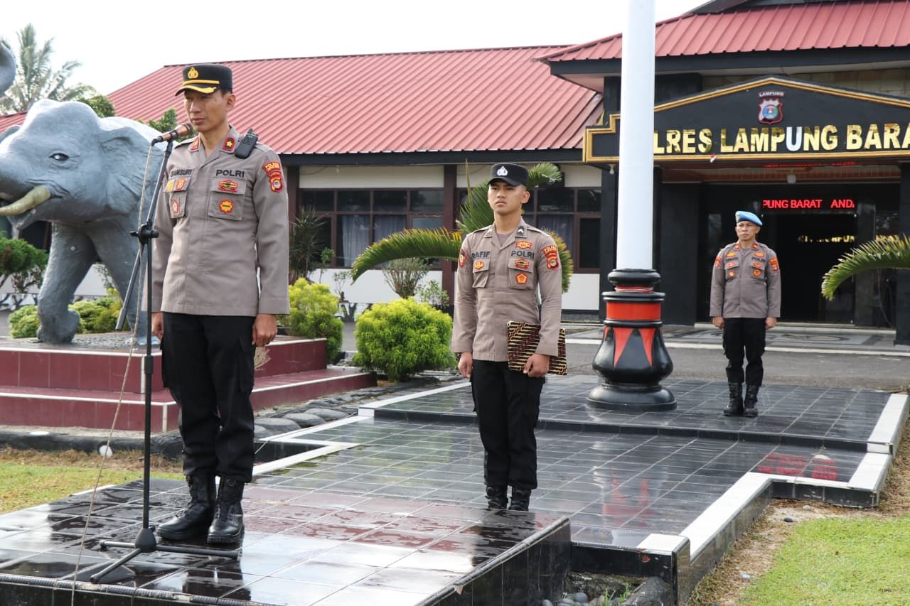 tribratanews.lampung.polri.go.id Lampung Barat – Polres Lampung Barat menggelar apel pagi di halaman Mapolres setempat yang diikuti oleh seluruh personel. Kegiatan rutin ini menjadi sarana untuk menyampaikan arahan dan pembinaan kedisiplinan kepada seluruh anggota.Dalam arahannya, Wakapolres Lampung Barat Kompol Samsuri, S.H., M.H. menegaskan komitmen institusi Polri dalam menjaga kehormatan dan marwah organisasi. Ia menekankan agar seluruh personel menjauhi narkoba dan tidak melakukan pelanggaran, bahkan sekecil apa pun, karena dapat mencoreng nama baik kepolisian.